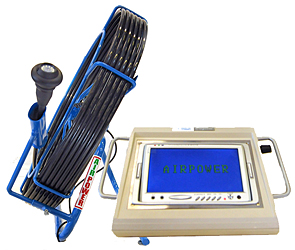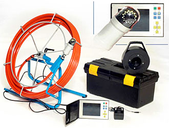 Kaapelikela jossa muovinen putki liitäntäkameraan kelan keskiöstä.